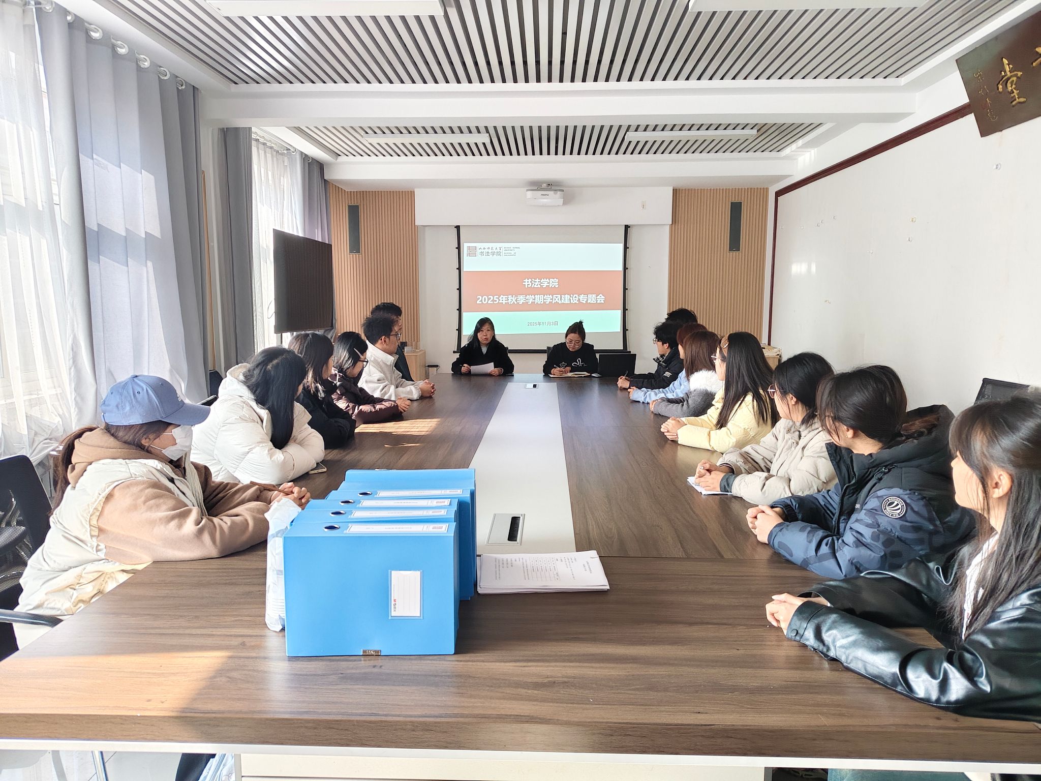11月3日,书法学院在8301会议室召开2025年秋季学期学风建设专题会议暨师范专业认证工作学生动员会。书法学院党总支副书记、学工组长李企婷,团委书记宁译锐及学生会骨干、各班主要学生干部参会。