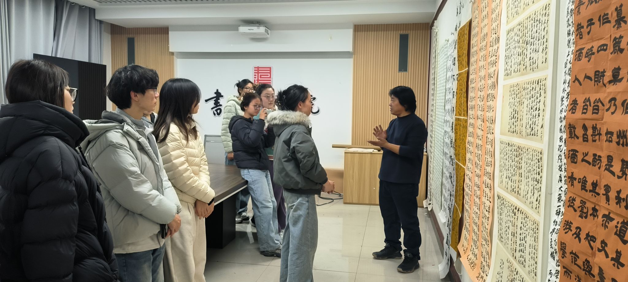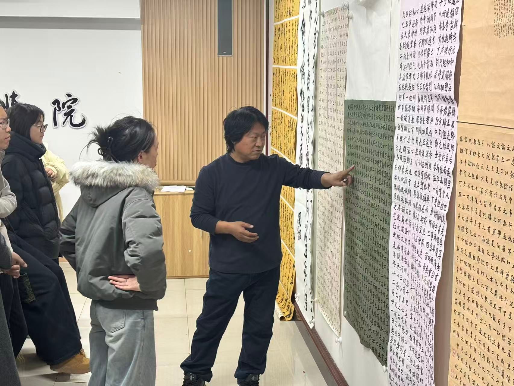 针对大二学生的临摹作品,王建魁老师认真查看并细致点评,重点强调了临摹方法与学习态度,要求同学们扎实练好基本功,精准把握作品法度。同时,老师着重讲解了作品落款规范,从落款格式、字体选择、位置布局等方面进行详细讲解,明确了作品整体形式要求,进一步提升同学们的专业创作意识。