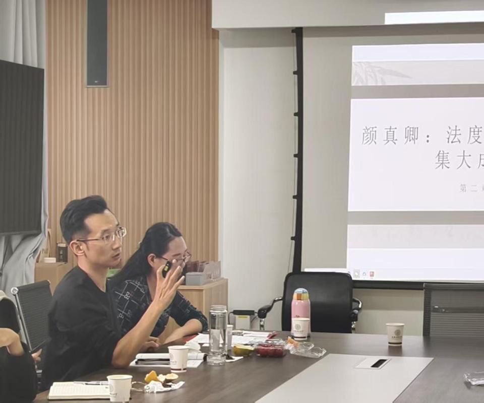 2025年9月29日上午10点,书法学院桐荫读书社第一期读书交流活动在学院图书资料室顺利举行。本期活动以“书写人格:笔墨间的风骨与性情”为主题,曹亚彬院长、王文清、赵蓉等老师出席本次活动,周柳伊老师担任主讲人。