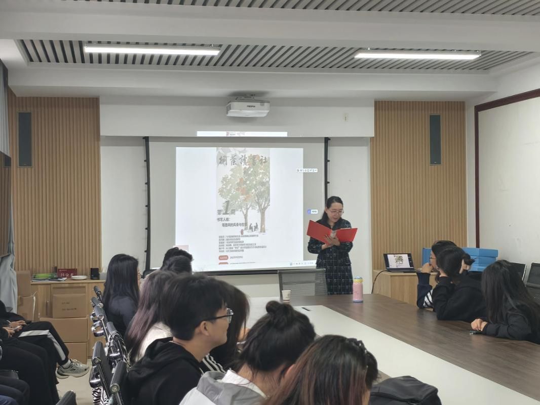 活动伊始,周柳伊老师介绍了桐荫读书社的由来与发展历程。读书社旨在延续纯粹的读书交流氛围,让书法学院成为有温度的思想家园。桐荫读书社将围绕“分享与成长”开展活动,内容涵盖生活、文学、书法、哲学等多个领域,计划邀请校内外学者与优秀学子参与,并开放线上报名通道与学生主持申请机制,助力学生在实践中提升表达与组织能力。